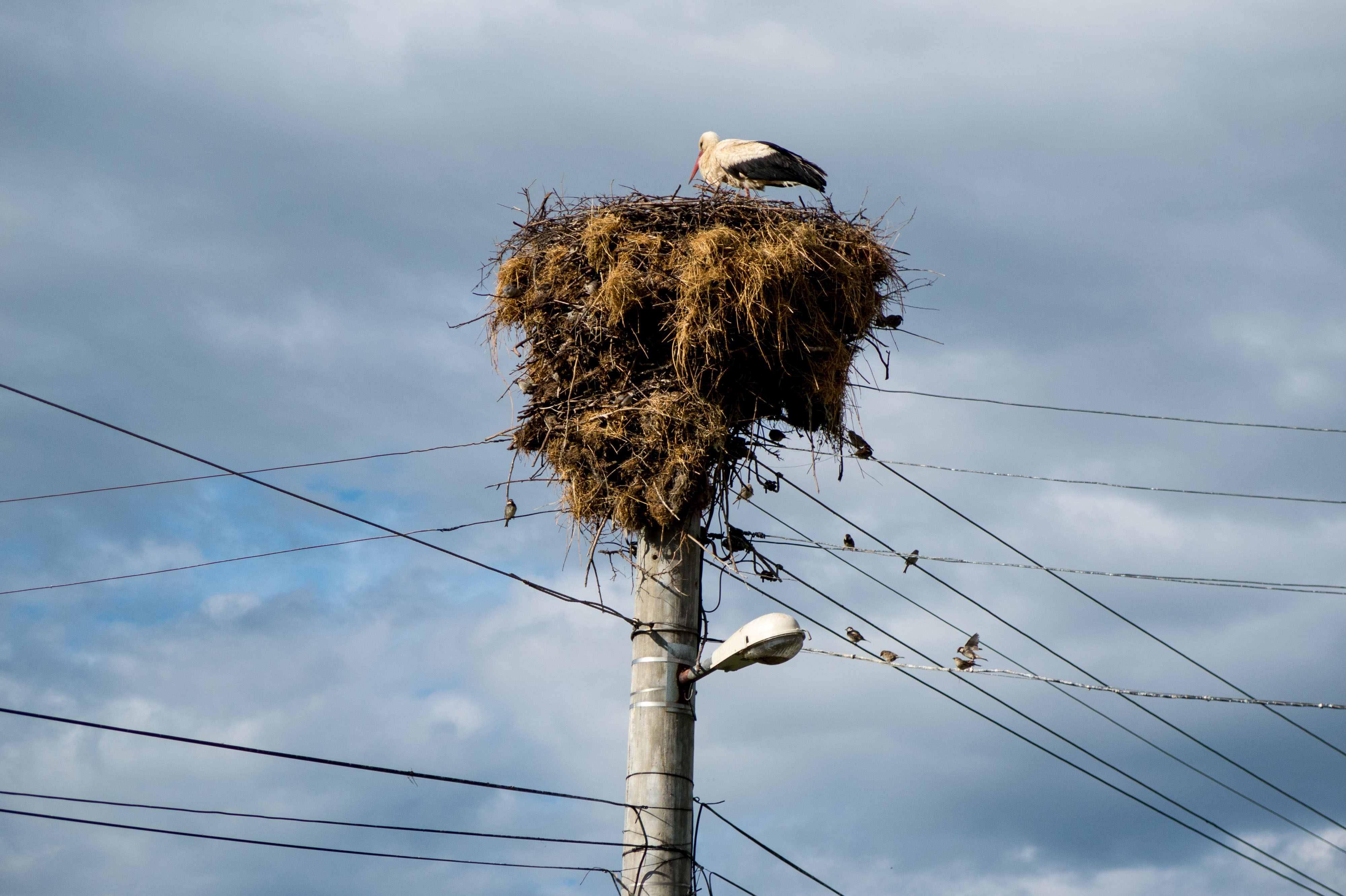 A stork checking the electrical wiring on the pylons. 100km into Bulgaria.