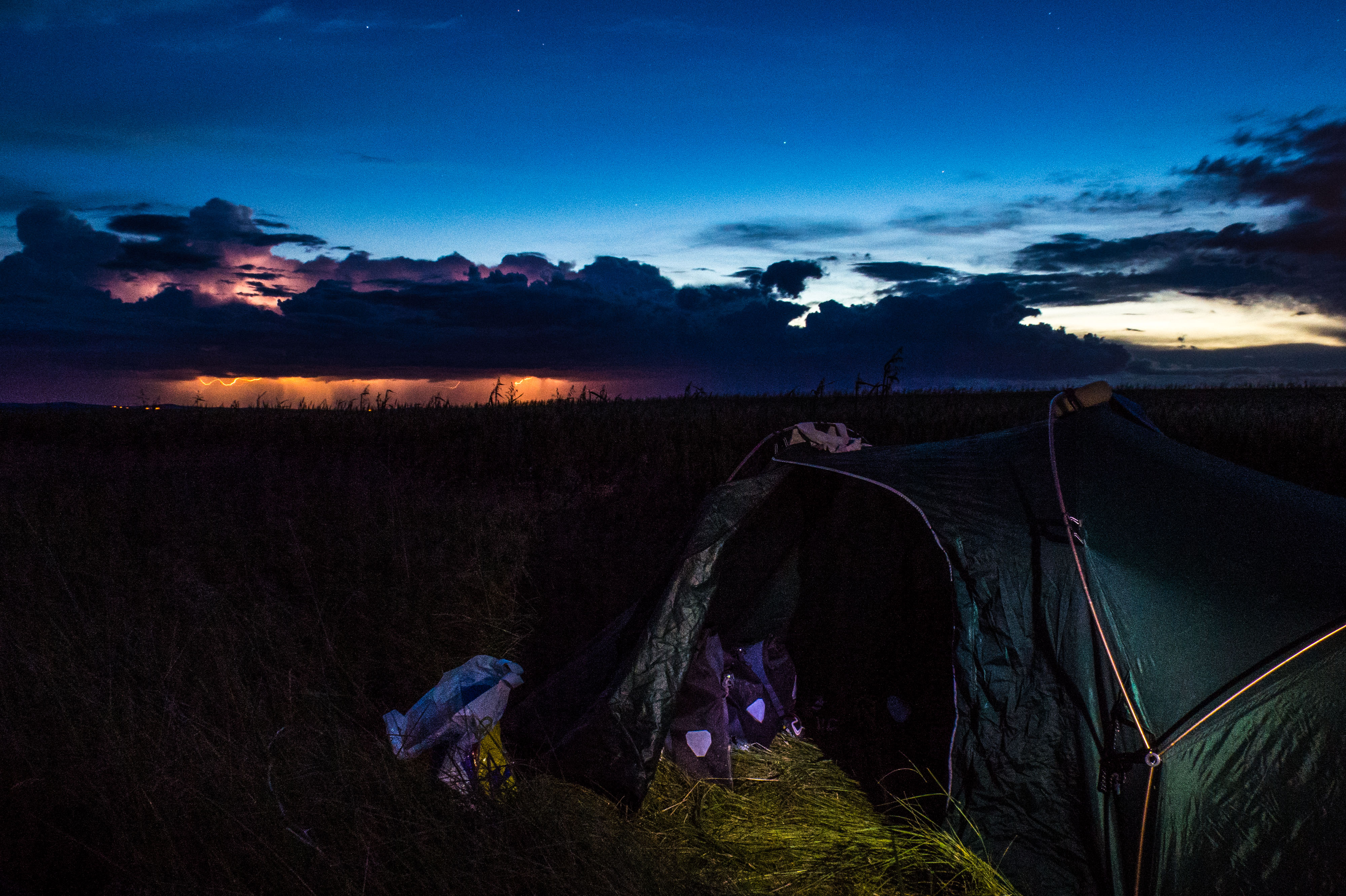 Camping in a Bulgarian field, 50km from the Turkish border, watching the thunder and lightening get ever nearer.