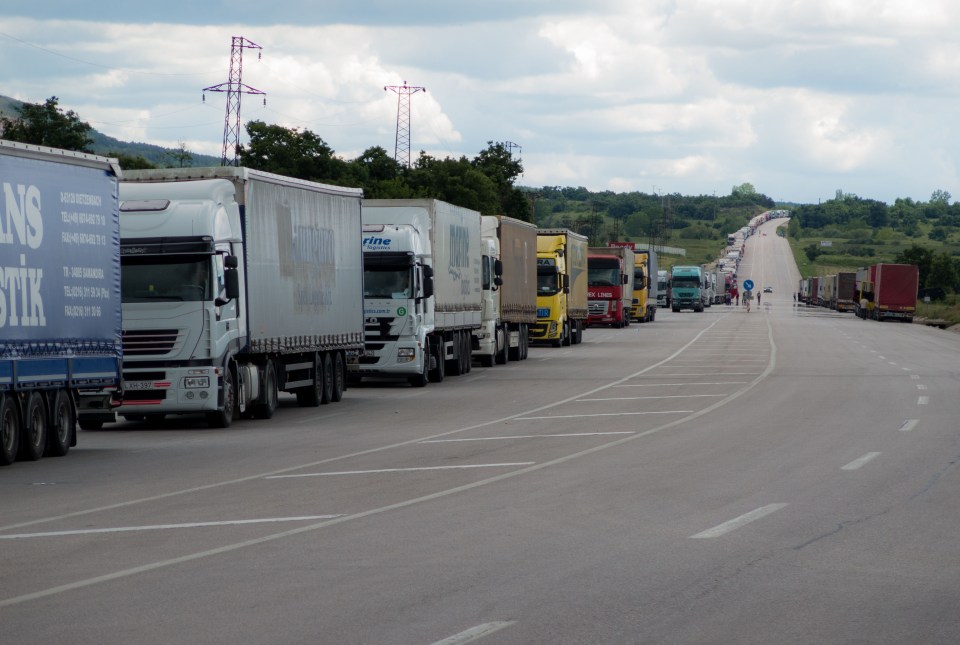 15km queue of trucks at the Turkey/Bulgaria border waiting to get into the EU. They weren’t moving much. It must take them months to get through.