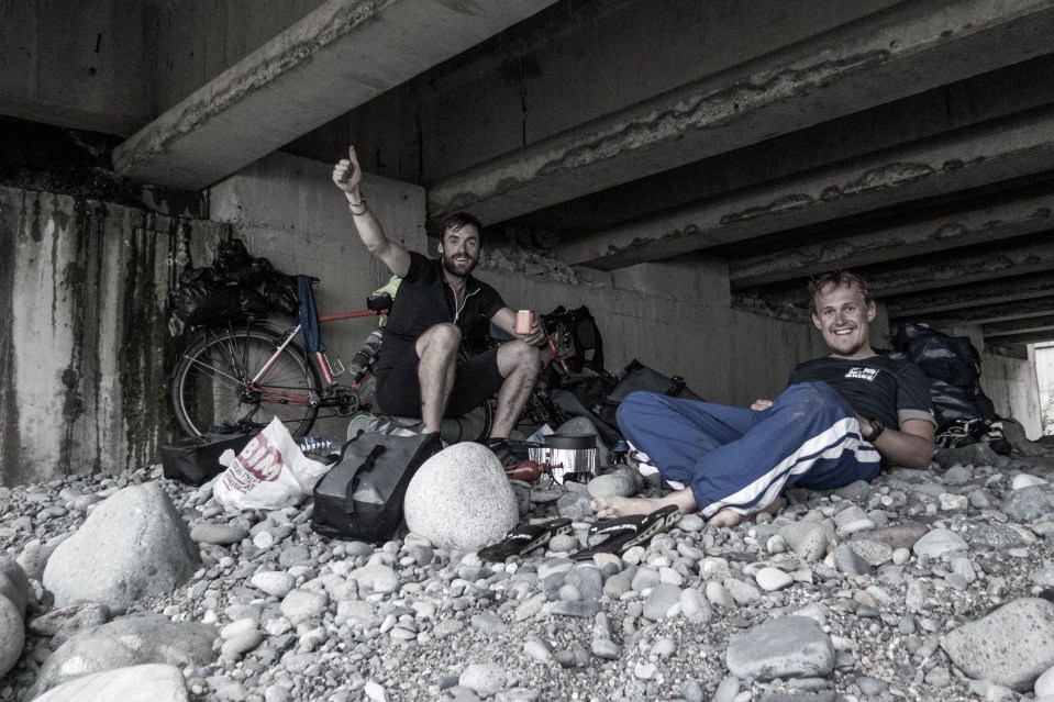 Sleeping under a bridge again. It was so difficult to find anywhere to camp along the Turkish coastline near the Georgian border as the houses and mountains were strewn out the whole way. At least it’s dry under a bridge. Near Findikli, Turkey.