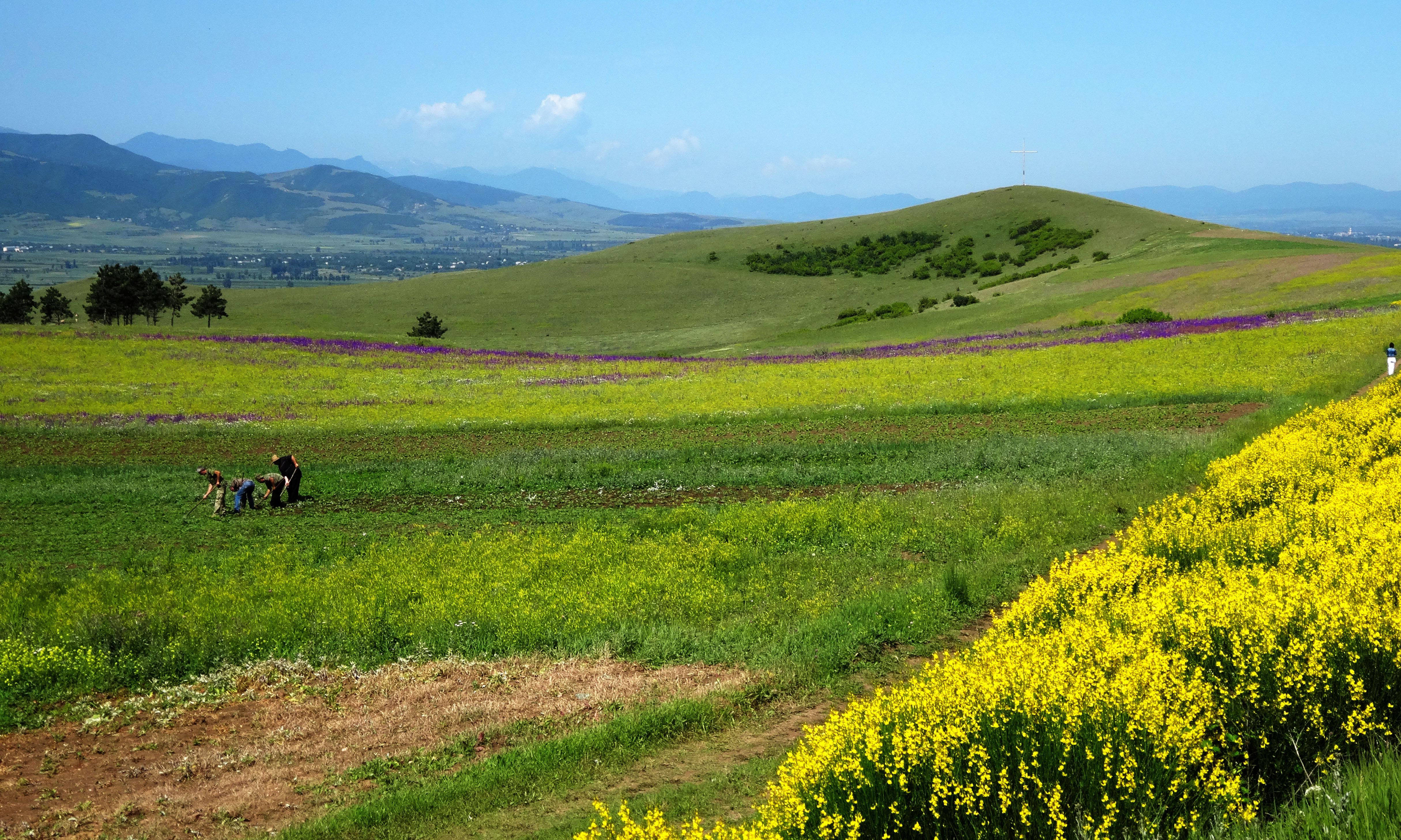The final stretch into Tbilisi became much prettier and sunnier. A great view across the fields of the smaller mountains to the south.