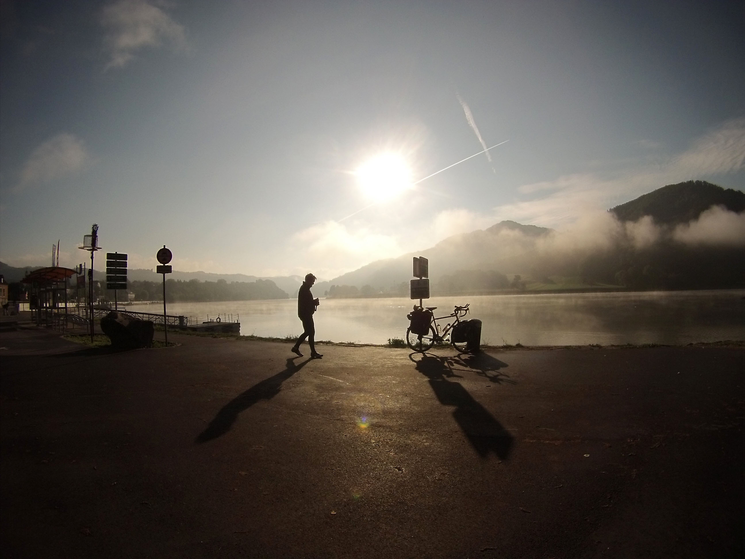 Final preparations on a cold but sunny morning on the banks of the Danube. Next stop Vienna.
