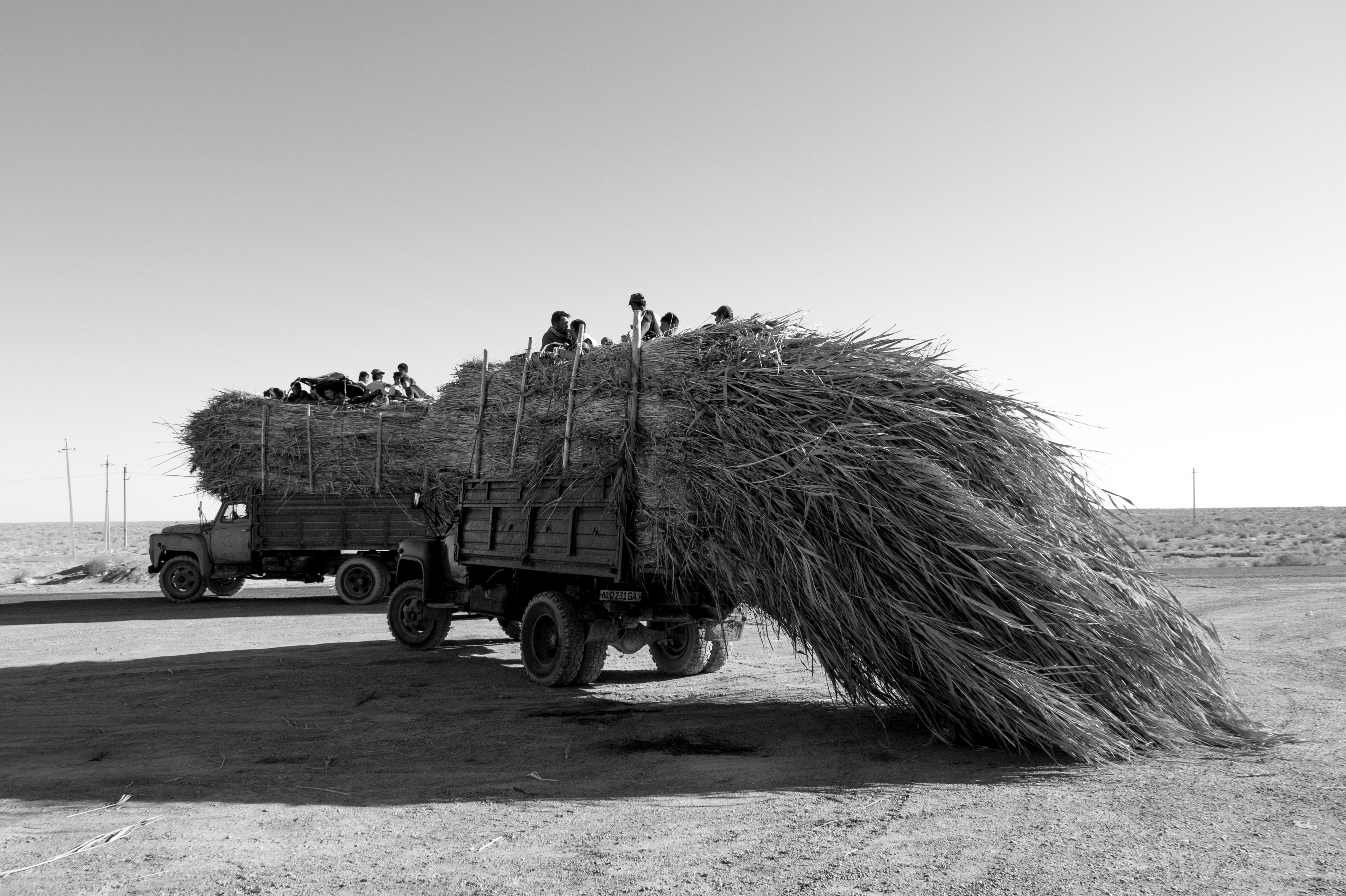 Overloaded with the harvest. Looks like a comfy ride up there.