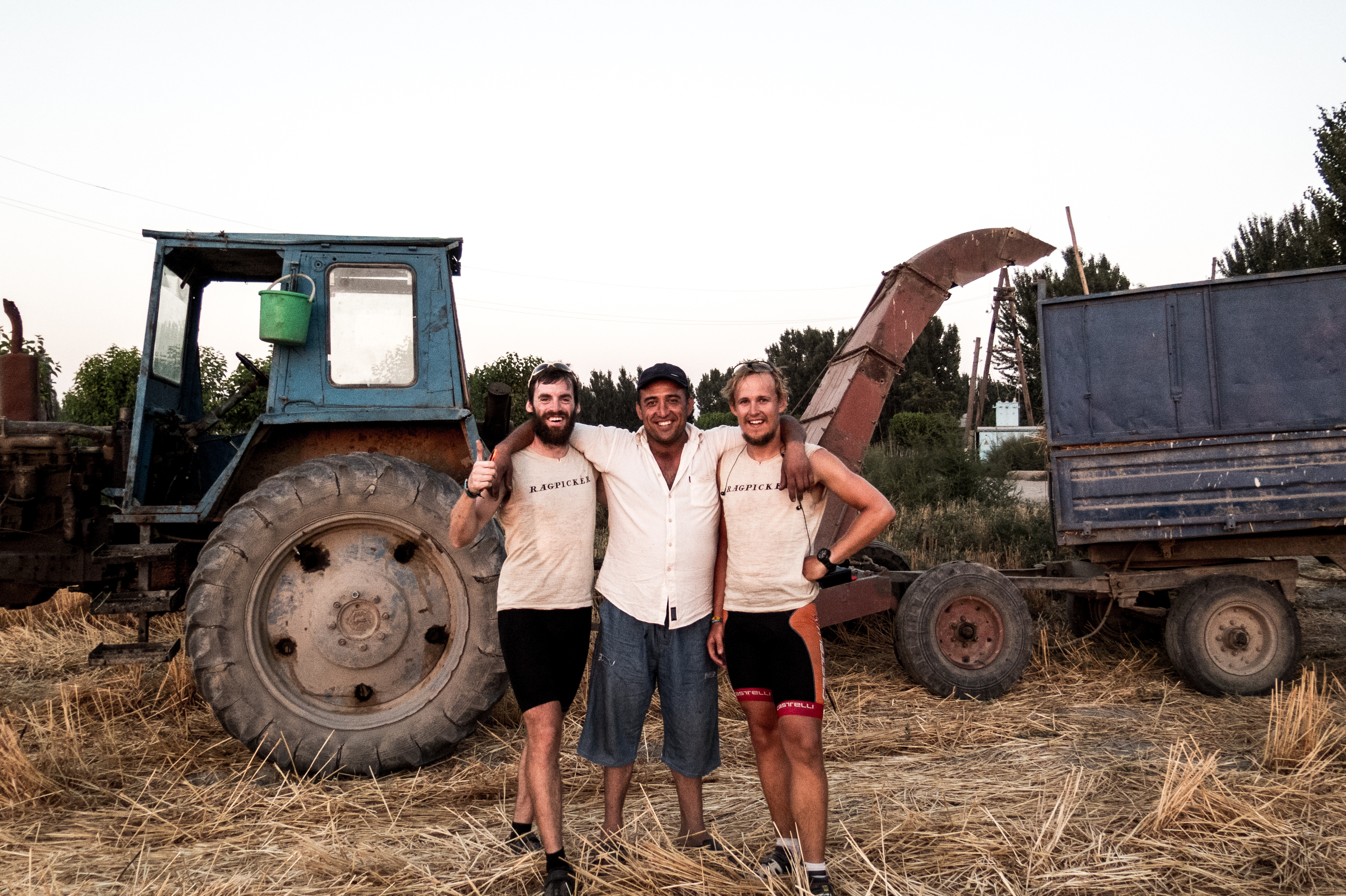 Friendly farmer said we could sleep in his field. The Uzbek version of my uncle Tollie in SA… Will was particularly excited because he had a 3 wheeled tractor (3rd wheel just out of view)