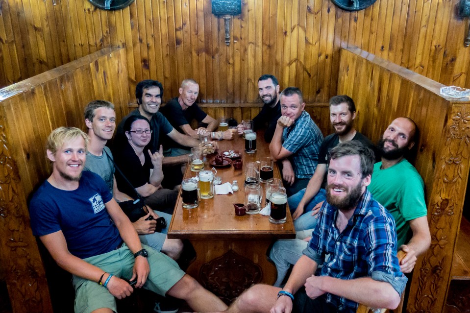 Beers and banter with a platoon of cycle tourers and other “overlanders”. From the left: Me (Johan), David (Swiss), Casandra (USA), Patrick (UK Cyclist), Kim (UK Cyclist), Roger (UK), Andy (UK Cyclist), Samuel and Nicola (Liechtenstein), Will.