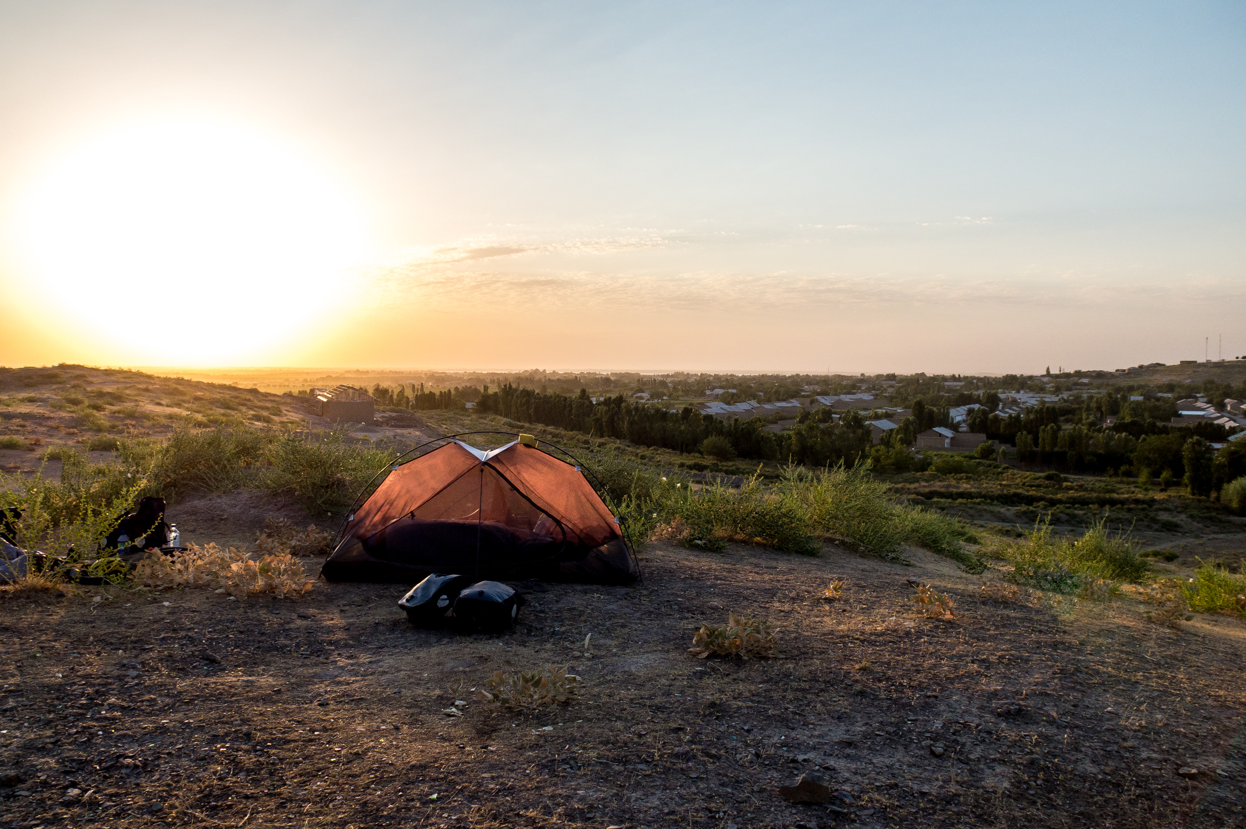 Camping on a little hilltop with a 200km flattish ride ahead of us into Tashkent.