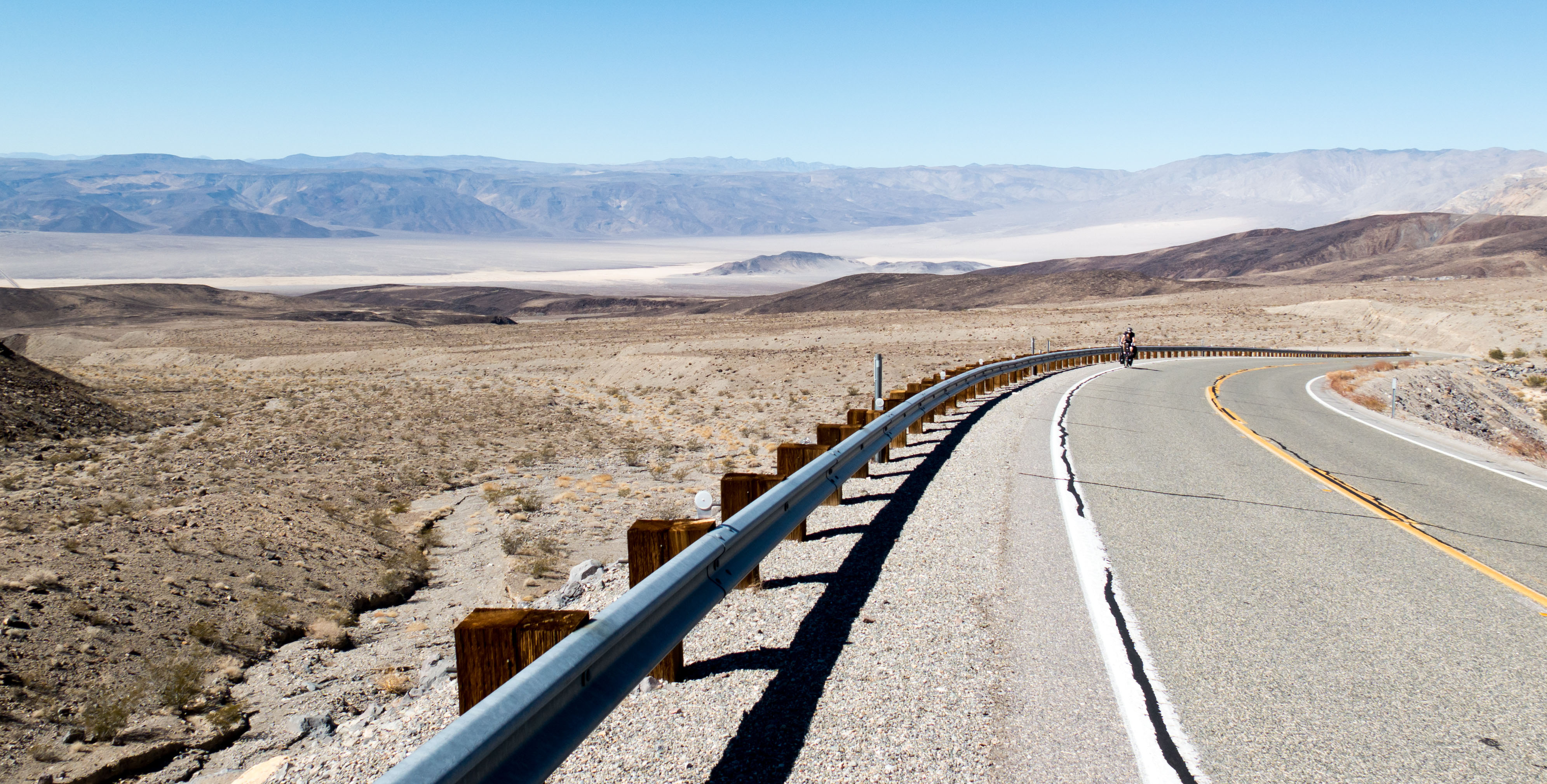 Leaving the valley floor to climb up 1000m and over into the next valley. Thirsty work out here. Near Panamint Springs, CA, USA