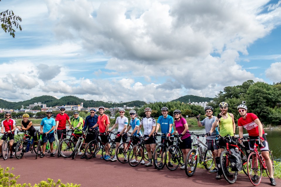 What a turnout! 15 of us for the ride down to Jinha beach and Busan. For some people, the furthest they’ve ever cycled – what an amazing effort. [Simon, me, Muhamed, Alan, Steve, Dave, Mick, Danny, Ben, Colin, Mark, Joy, Nick, Will, Antony] Cycle path along the river out of Ulsan, South Korea.