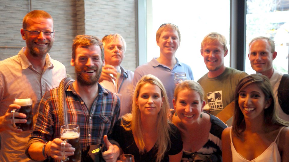 Drinks with some of the BP crowd, our amazing hosts Anne (centre) and Drew, our new cycle touring friend Tom (far left), Colin (the fixer), Harveen (far right, our “courier”) at the local pub (Harbour) in Baku.