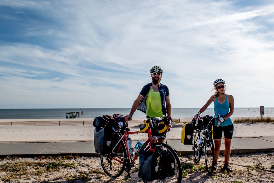 At last we’ve reached the beautiful beaches of the Gulf Coast. I think Reece and I interrupted a Romo beach walk. Long Beach, MS, USA