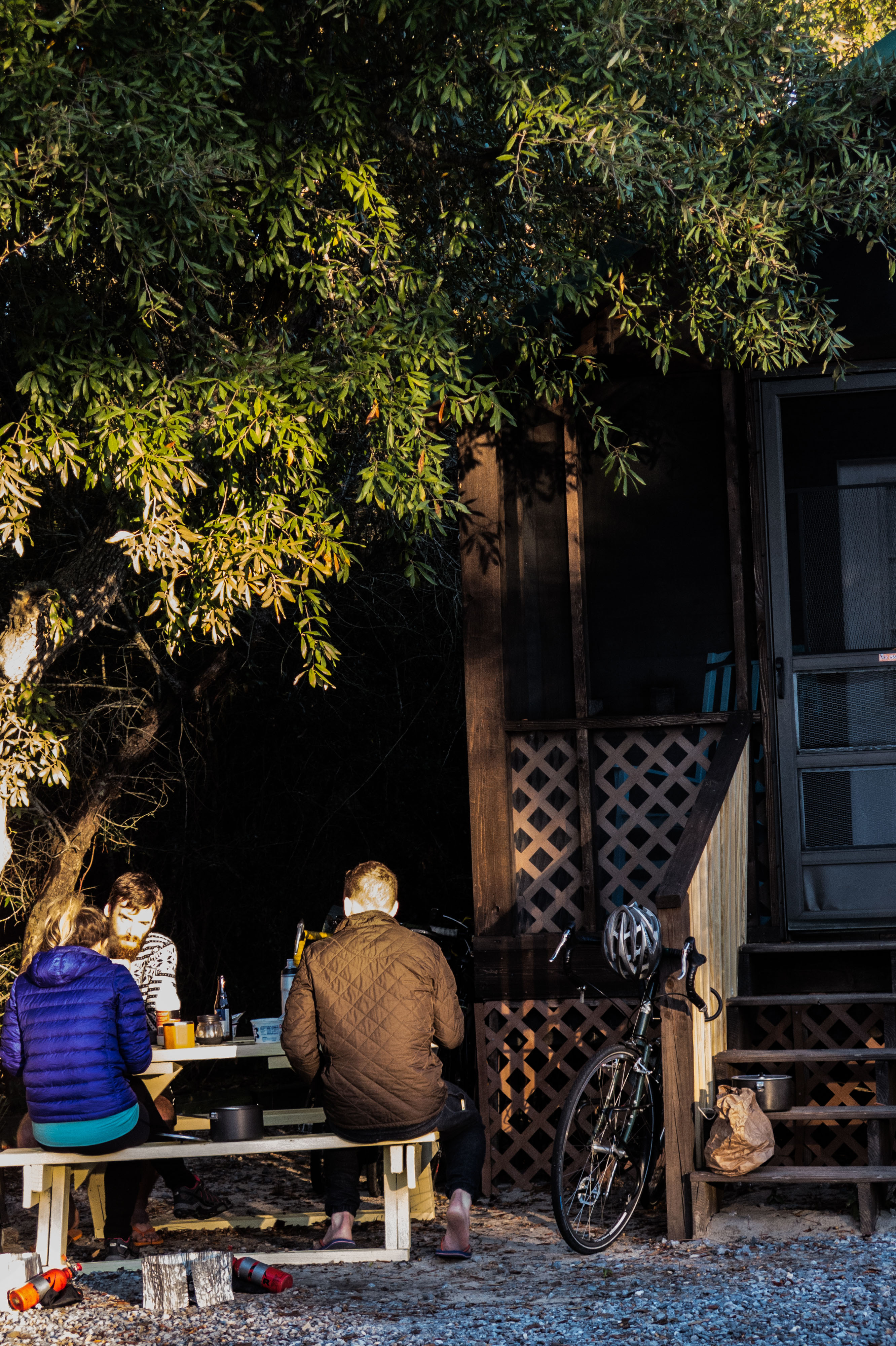 Some of the “Campgrounds” here in the south are charging exorbitant prices. They’re all RV parks for people living in mobile homes who come to the south coast over the winter. In the end it was cheaper to get a little log cabin. Cosy night. Navarre, FL, USA
