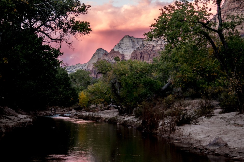 Camping on the Virgin river in Zion. Not a bad sunset… Zion Canyon, UT, USA