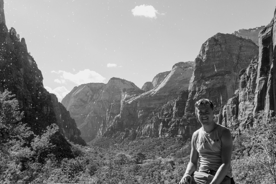 Standing under the weeping rock. This is a truly stunning park. Zion Canyon, UT, USA