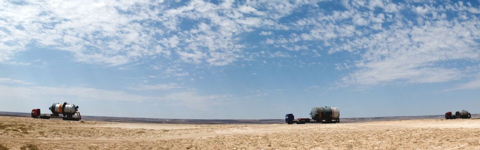 We caught up to this convoy of pressure vessels from Korea on their way to a new chemical plant in Uzbekistan. Over 3 days they made the same distance we did!
