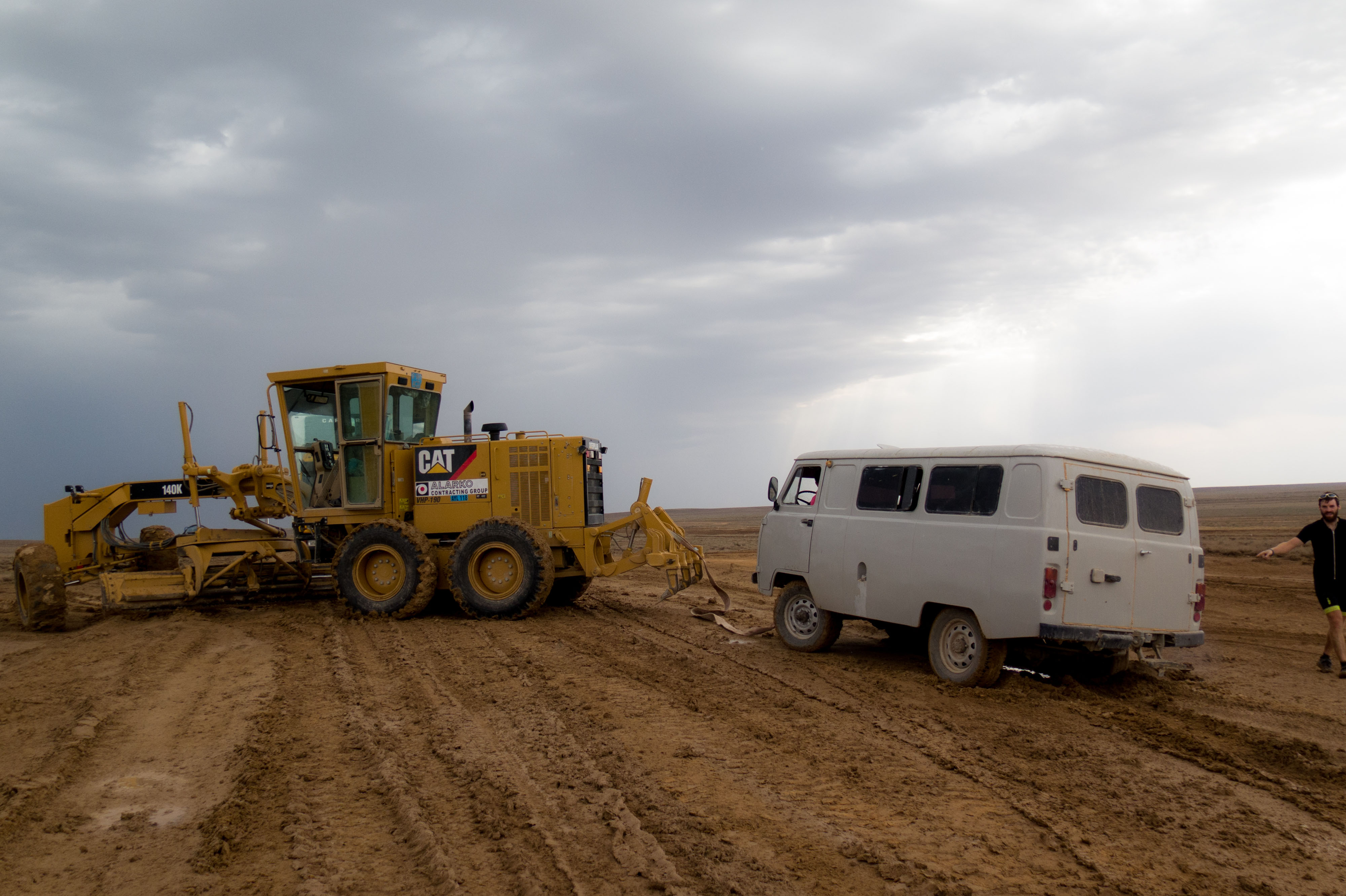 After a while the van got stuck and we had to get towed out by this big Cat. It happened a couple more times and we had to abandon the van.