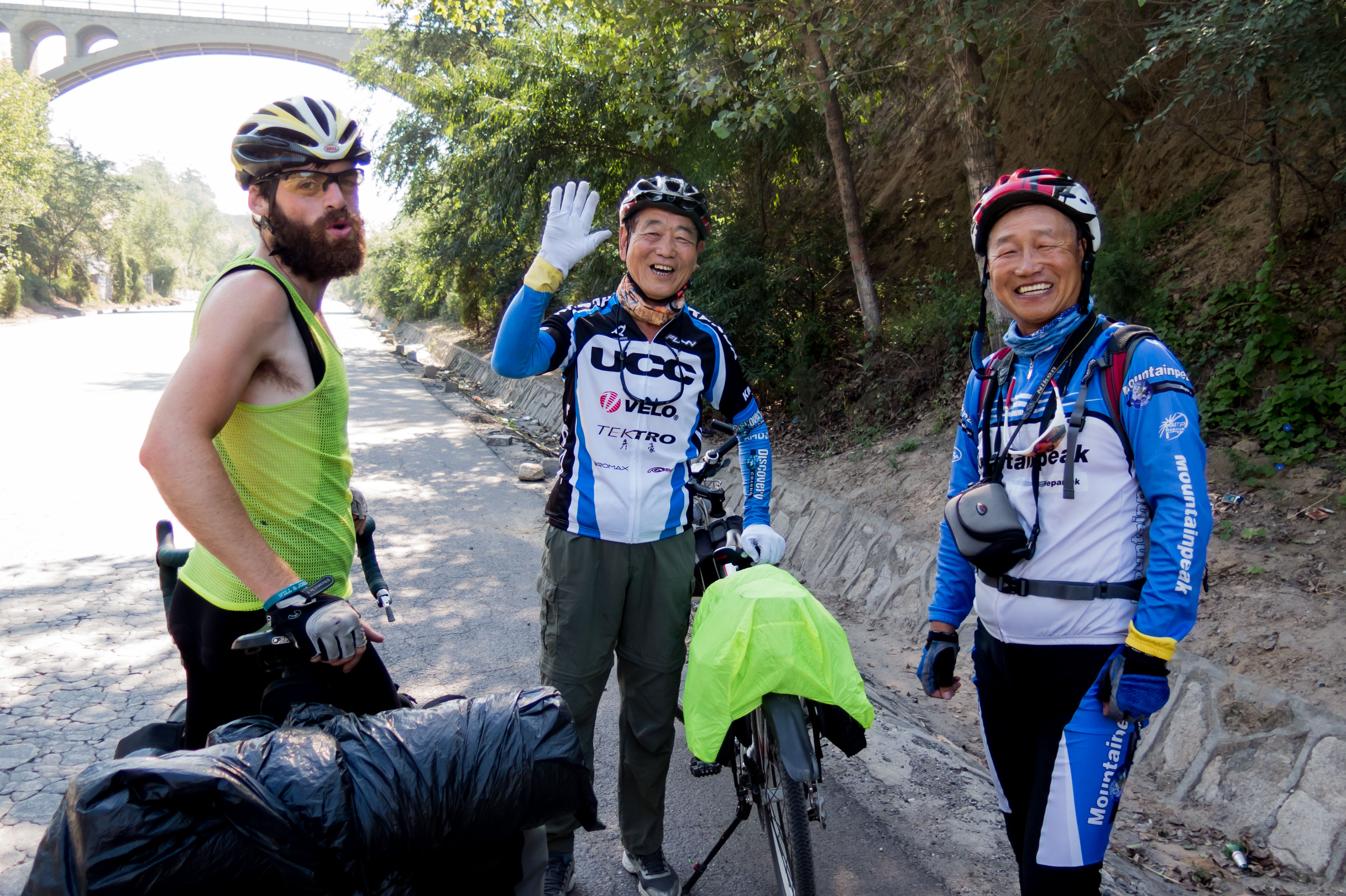 We’ve met plenty of Chinese cycle tourers while in China (only 2 Westerners). They couldn’t understand how we weren’t cycling fulling covered… meanwhile there are waterfalls coming off our foreheads. Near Sanmexia, Henan Province, China.