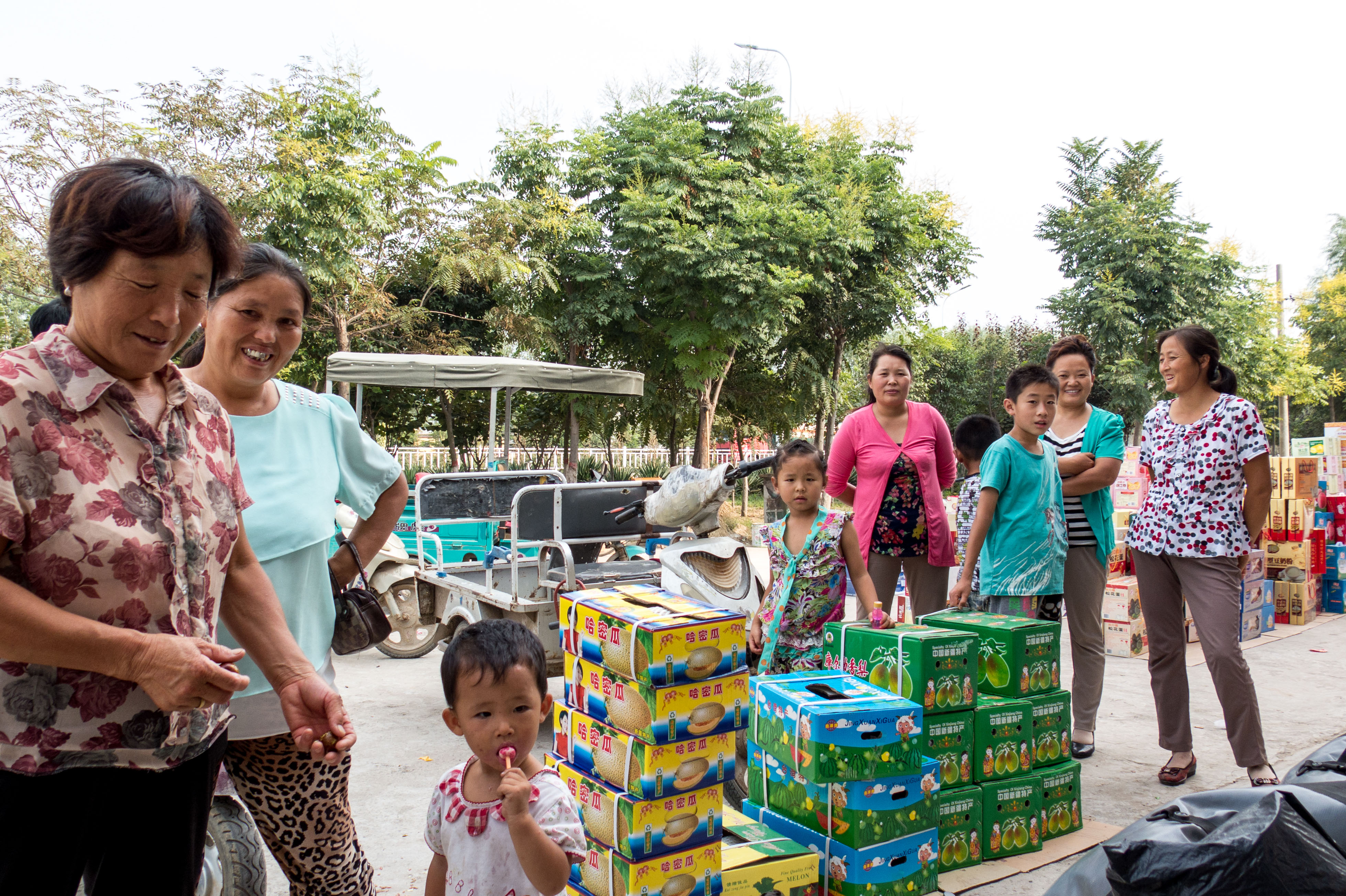 A typical scene every time we stop for sustenance. People appear from everywhere and gather around us to stare and take photos. We have felt like celebrities everywhere we’ve gone in this country. We’re stopped several times a day by people wanting to take photos and stare… Heze, Shandong, China.