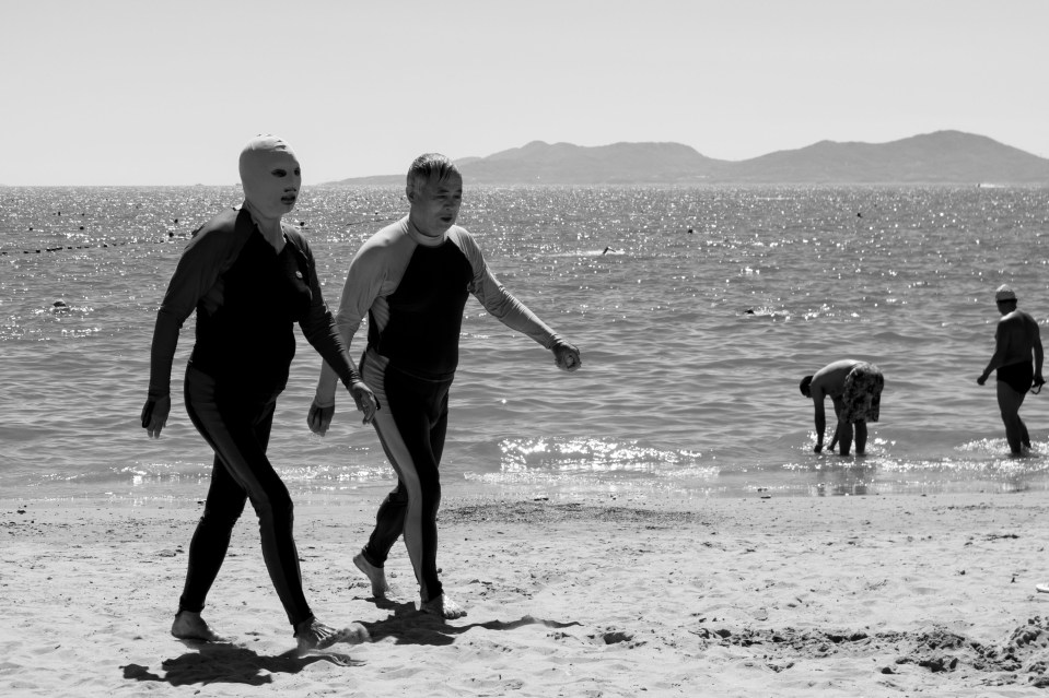 Just had to get a photo of one of the “facekinis” since here on this beach in Qingdao is where the fashion started. Ridiculous.