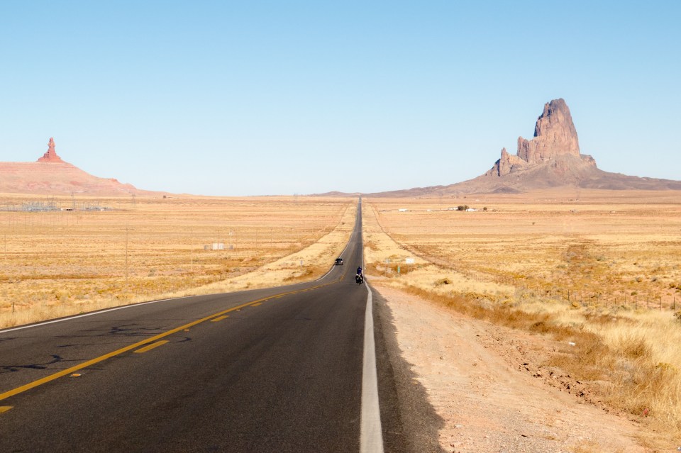 This is what a 15km straight road looks like. It’s a serious mental challenge. Darting across the desert landscape for Monument Valley. Kayenta, AZ, USA