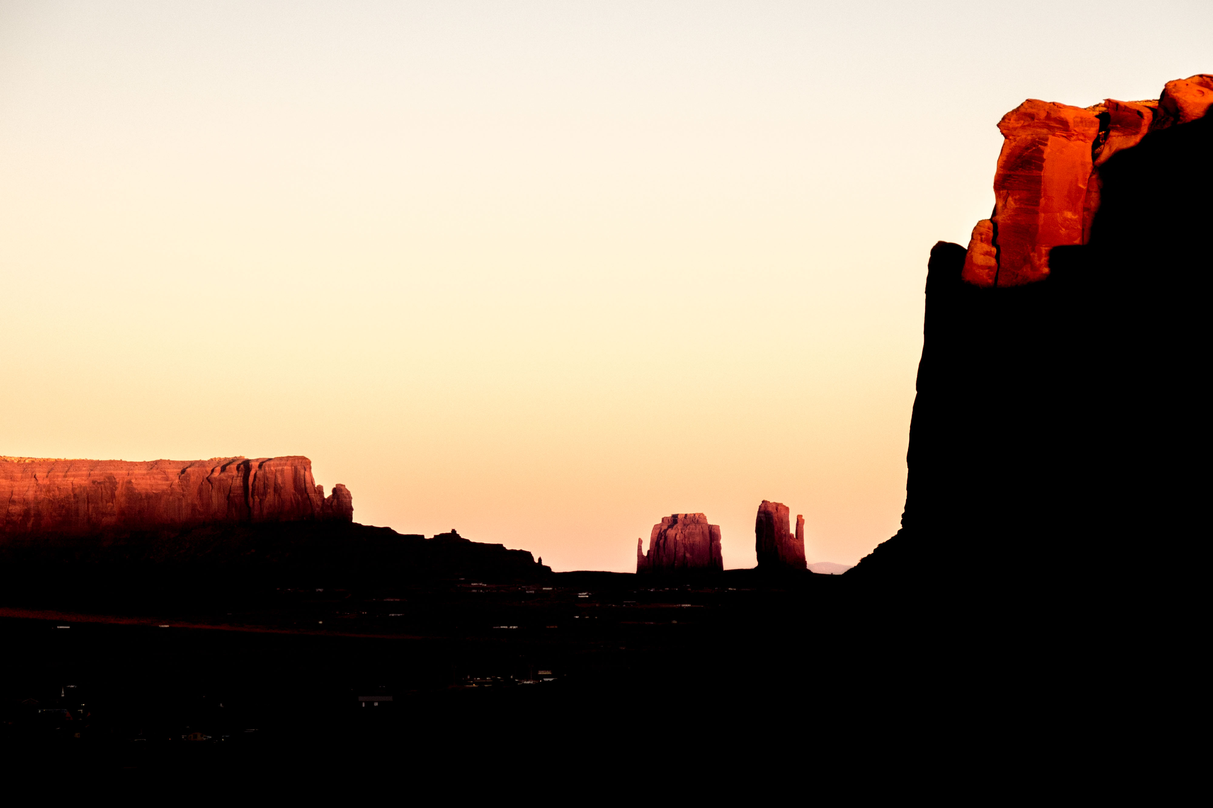 The stacks catching the last of the wintery sun. Monument Valley, UT, USA