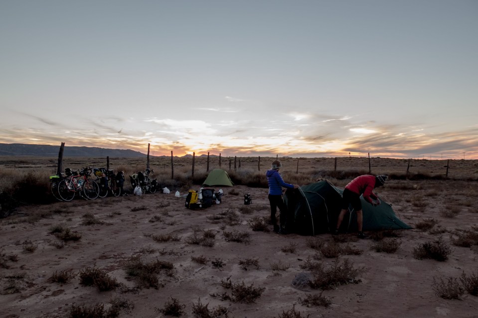Wild Camping behind a desert store. Thorns and horse dung everywhere. Reece not happy. Red Mesa, AZ, USA