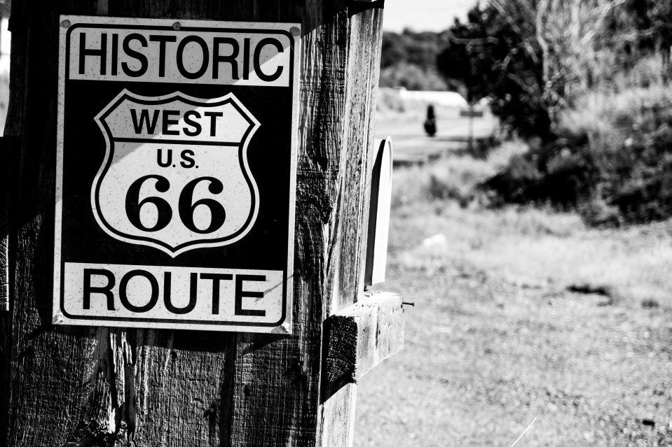 Riding route 66, the legendary cross-continental US highway. Near Moriarty, NM, USA