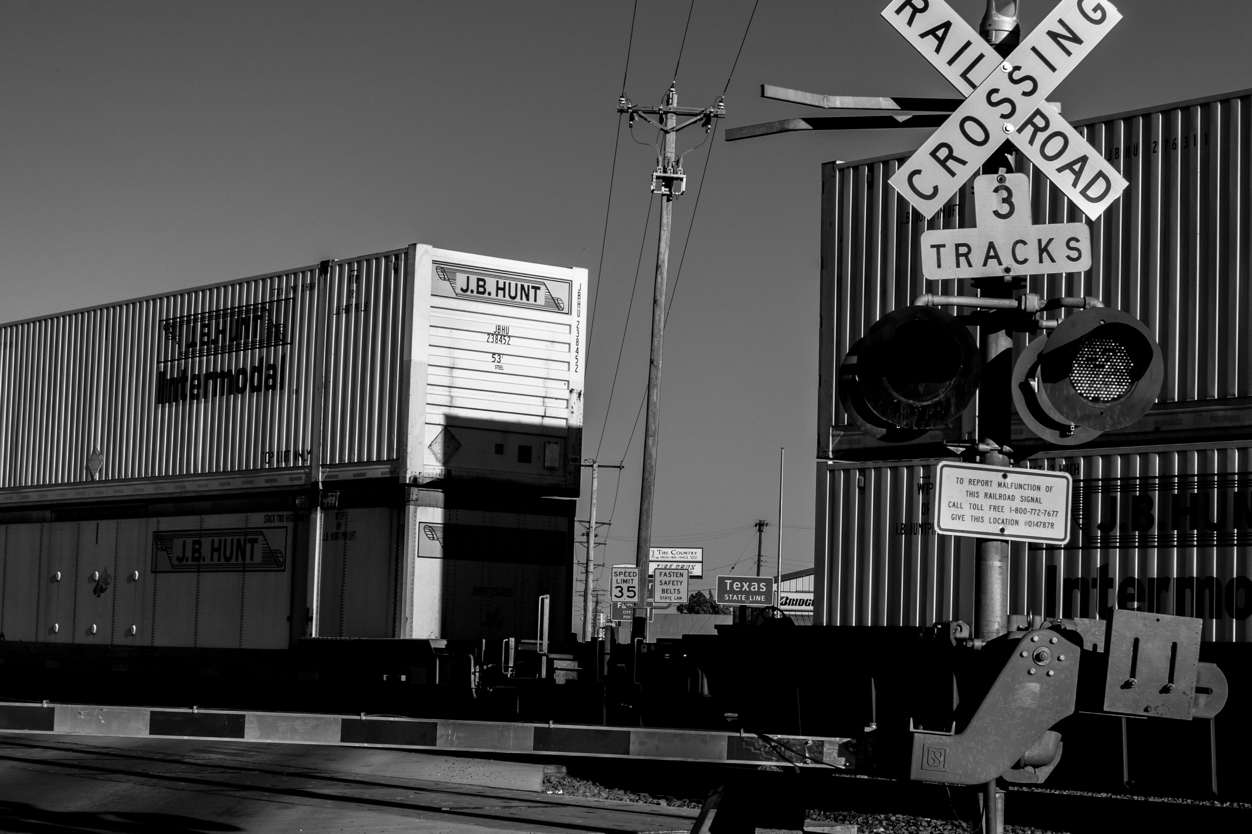 Our first glimpse of the Texas State line. Nice to see them using lots of freight trains to get the nasty lorries off the roads. Texico, NM, USA