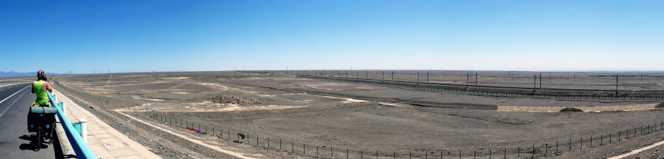 There really is nothing out here. Except for a brand new high-speed railway line they’ve decided to build in a straight line right across China. It goes straight through mountains, cities and over gorges. Incredible. Northern edge of Taklaman Desert, Xinjiang, China
