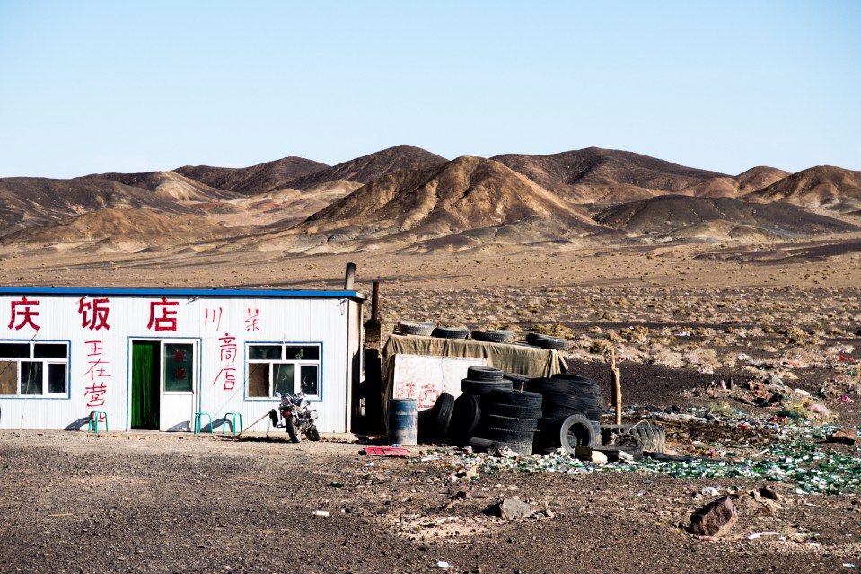 We found a building! And the guy sold us water! Desert, Xinjiang, China