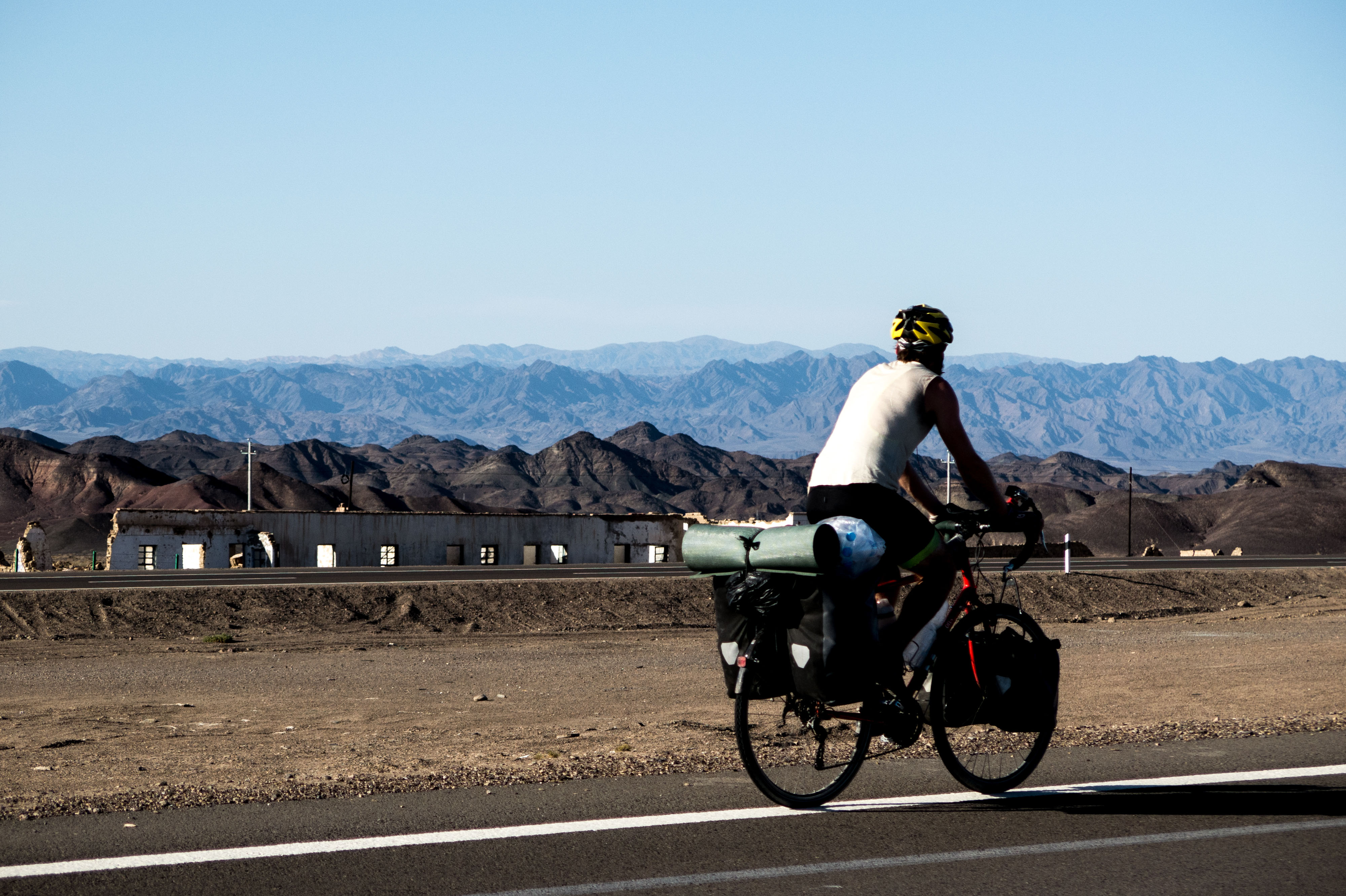 Charging for the next petrol station to find sustenance. Desert, Xinjiang, China.
