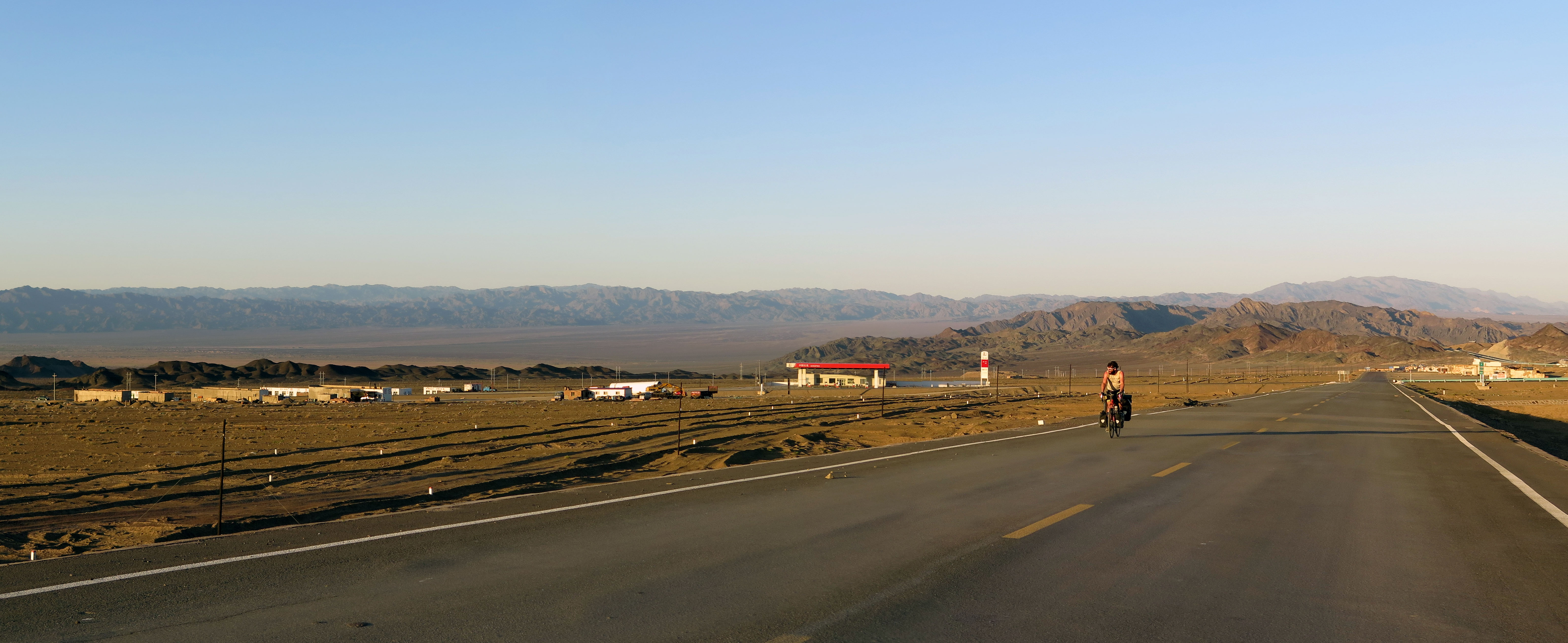 We found it! A little restaurant provided some very tasty noodles and recharged us. Off to find somewhere to camp. Somewhere in the desert, Xinjiang, China.