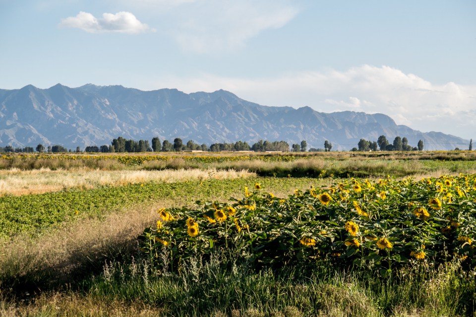Endless fields of Sunflowers as the desert slowly turns back to green. SE of Zhange, Gansu, China.